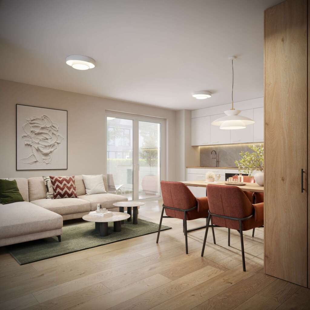 Die 3-Zimmer-Appartements im Obergeschoss der Residenz am Stachus überzeugen durch eine durchdachte Raumaufteilung und ein modernes, wohnliches Ambiente. Großzügige Wohn- und Essbereiche schaffen eine angenehme Offenheit und bieten gleichzeitig klare Strukturen für Wohnen und Leben. Große Fensterflächen sorgen für viel Tageslicht und eine helle, freundliche Wohnatmosphäre.